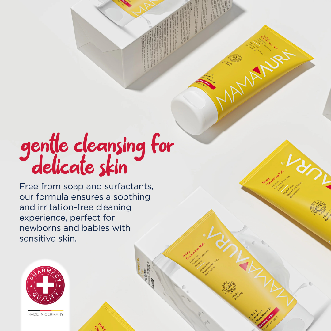 Lapte de Curățare pentru Bebeluși este formulat pentru a curăța, hidrata și proteja pielea sensibilă a bebelușilor, folosind ingrediente de calitate. Îmbogățit cu ulei bio de floarea-soarelui, ovăz, glicerină și vitamina E, curăță delicat, prevenind uscarea și iritațiile. Fără alcool, uleiuri esențiale și parfumuri, este potrivit pentru pielea foarte sensibilă și reduce riscul reacțiilor alergice.