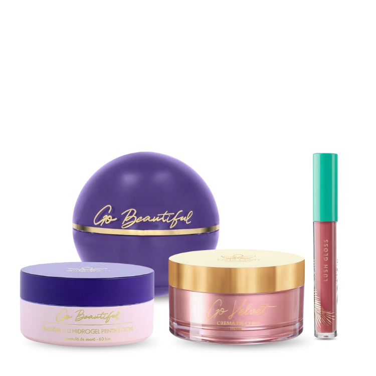 Tot ce ai nevoie pentru a străluci până la răsărit sunt ajutoarele tale: Crema regeneranta de noapte, plasturii din hidrogel de noapte, crema de corp Monoi si Lush Gloss Candy 4